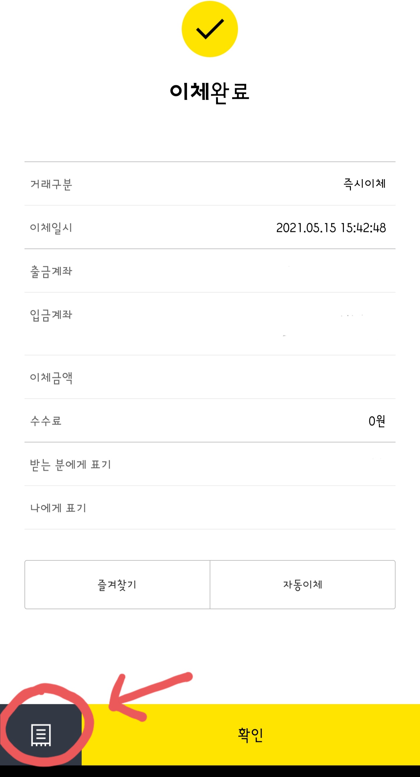 카카오뱅크 모바일 이체확인증 받는 법