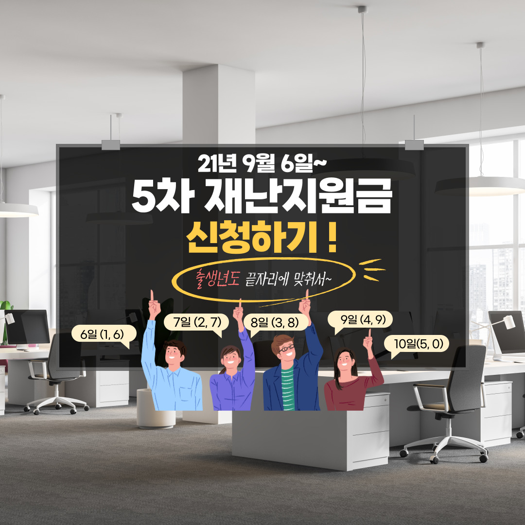 [ 5차재난지원금신청일은 출생년도 뒷자리 보기! ] 안녕하세요!