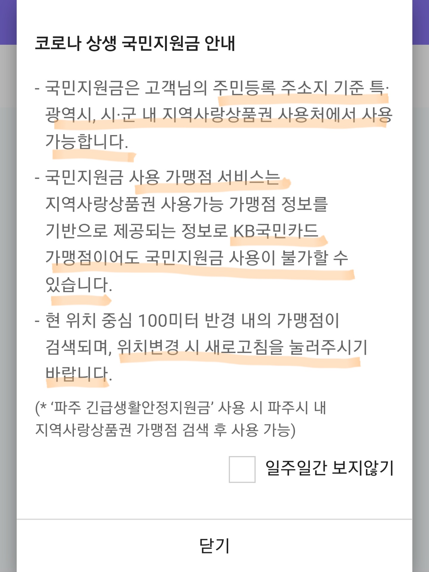 (지도 이동시 새로고침 해야 함. 가맹점으로 표시되어도 사용불가일 수도 있으니 전화 후 방문 필수!)