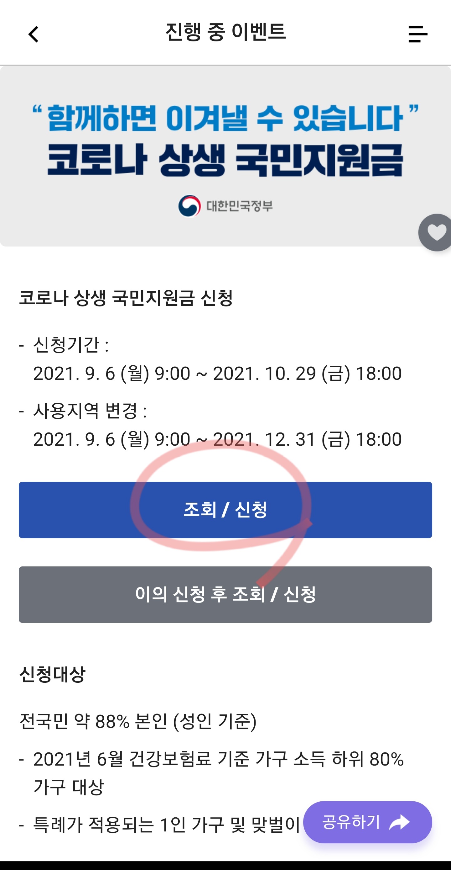 저는 5차 재난지원금 신청일이 바로 오늘입니다!