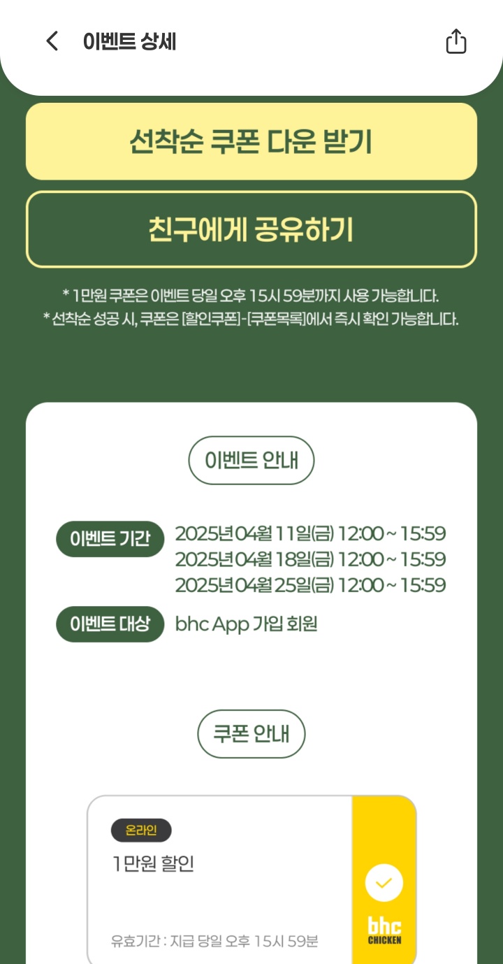 bhc 1만원 할인 쿠폰 당첨 되더라도