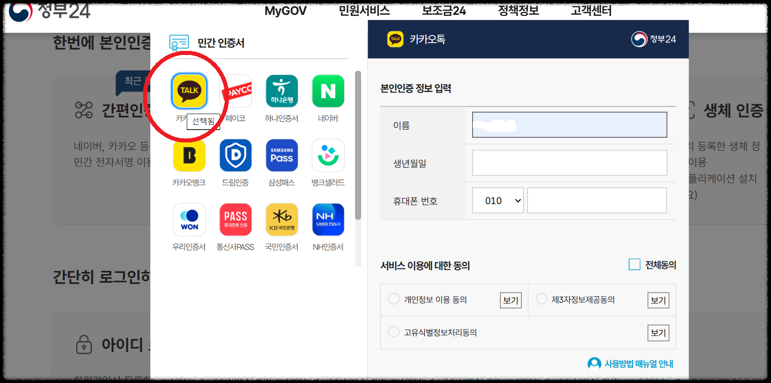 온라인 신청: 별다른 서류 없이 인증만 하면 OK!