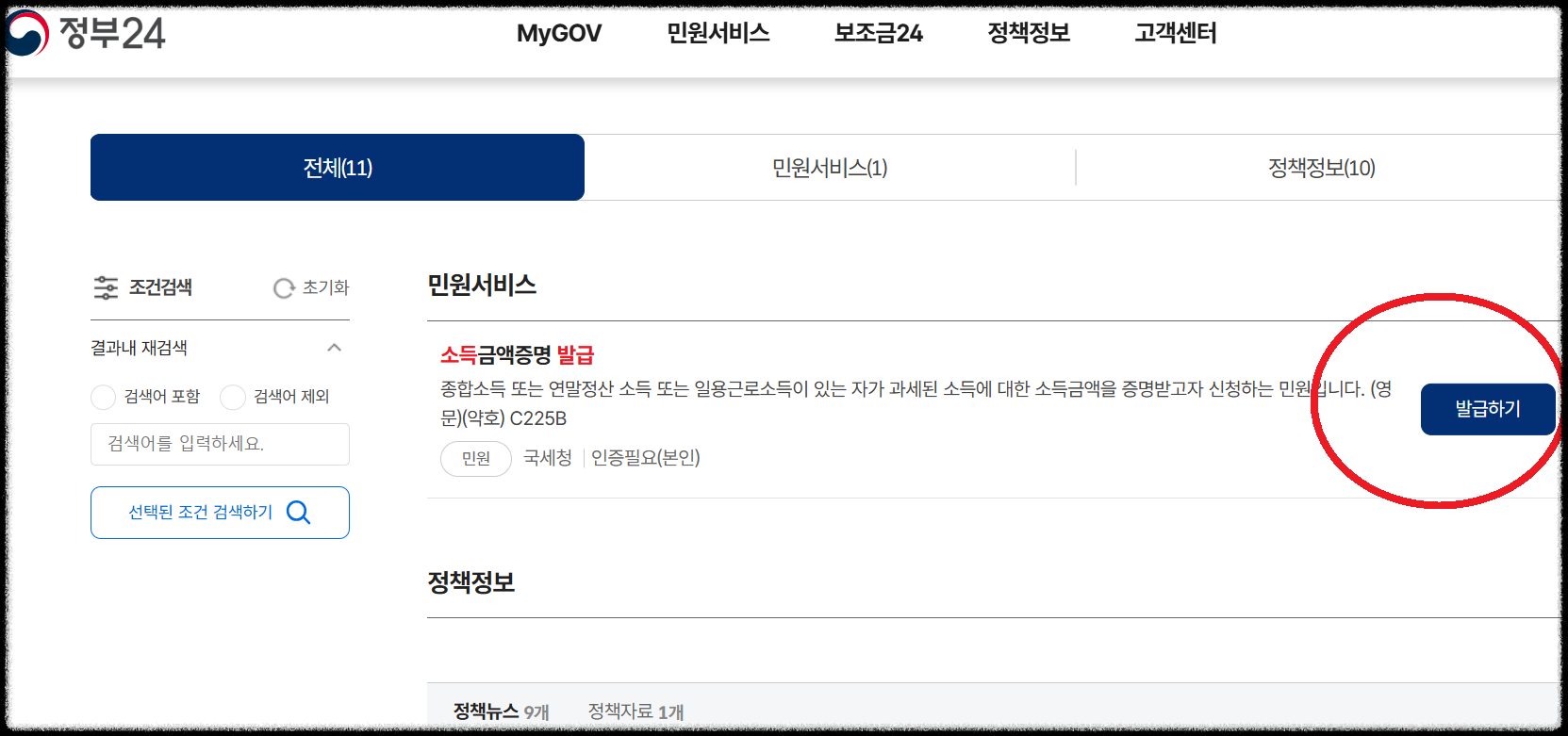 소득금액증명 발급 | 민원안내 및 신청 | 정부24