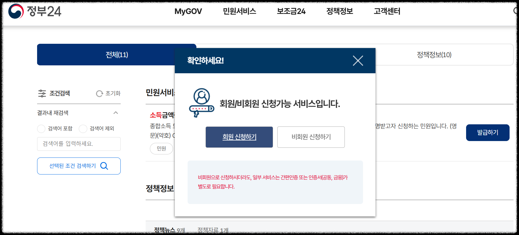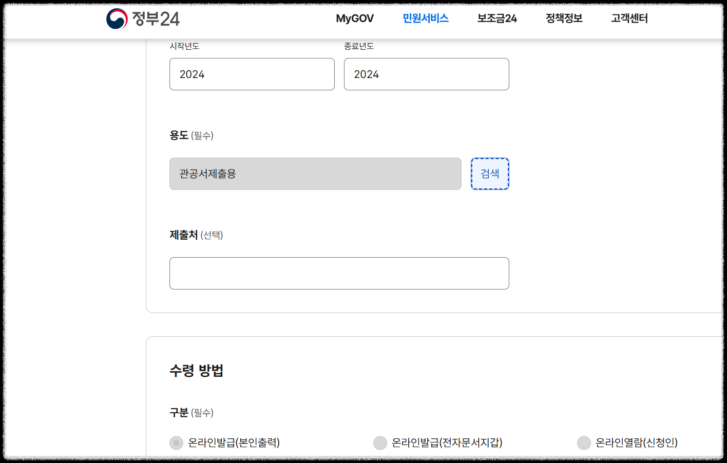 정부24 홈페이지에 접속해서 바로 신청할 수 있어요.