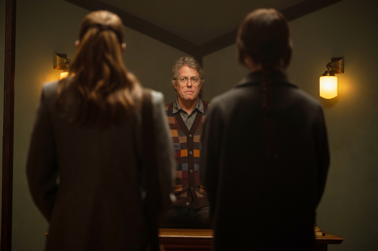 이 영화의 가장 큰 반전이자 힘은 바로 휴 그랜트의 캐스팅이다. 그는 고함도 없이 오직 말과 눈빛만으로 제압한다. 그랜트는 이 역할을 통해 ‘정중한 악역’을 보여줬다. 그의 대사는 조용하고 부드럽지만, 말끝마다 칼날이 있다. 철학자 같기도 하고, 광신도 같기도 한 이 모호한 인물은, 관객들마저 혼란에 빠뜨린다. 그가 악인인지, 아니면 깨어 있는 회의론자인지는 영화가 끝나도 확신할 수 없다.